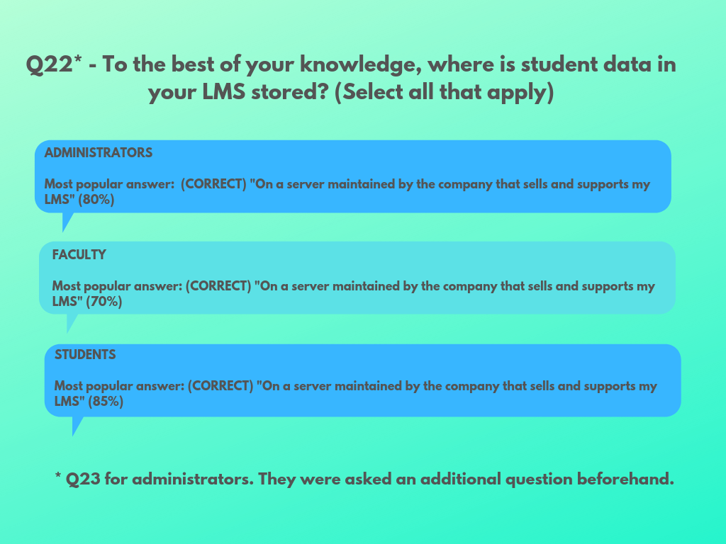 Q22 Summary Graphic – To the best of your knowledge, where is your data in your LMS stored? Go Back q22-graphic-Download Share this: Share on X (Opens in new window) X Share on Facebook (Opens in new window) Facebook Like Loading...