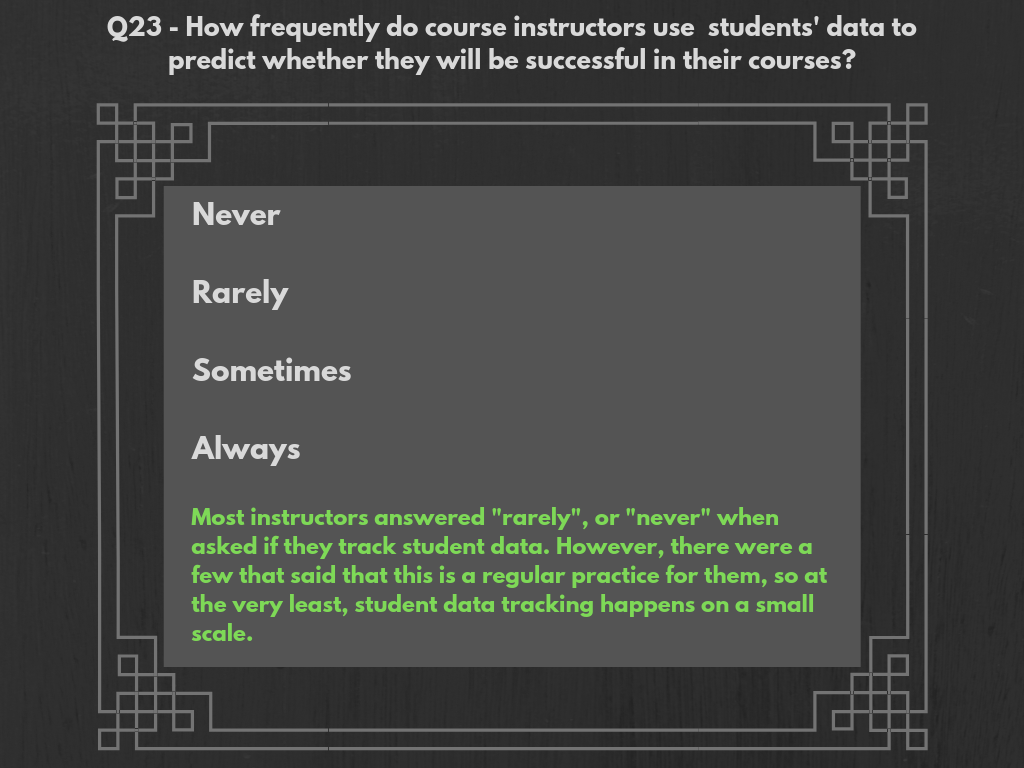 Though some instructors mentioned tracking student data (for various purposes) in their LMS, most said that they rarely, if ever, do this. So while it does happen, student data tracking is a fairly rare occurrence.